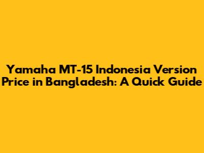 MT-15 Indonesia Price In Bangladesh: A Quick Guide