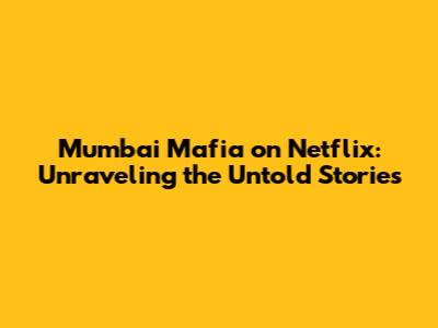 Mumbai Mafia On Netflix: What You Need To Know
