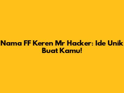 Nama FF Keren Mr Hacker: Ide Unik