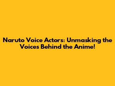 Naruto Voice Actors: Unmasking The Voices Behind The Anime!