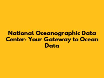 National Oceanographic Data Center: Your Gateway To Ocean Data