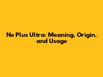 Ne Plus Ultra: Meaning, Origin, And Usage