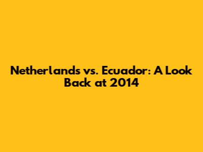 Netherlands Vs. Ecuador: A Look Back At 2014