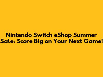 Nintendo Switch EShop Summer Sale: Best Game Deals