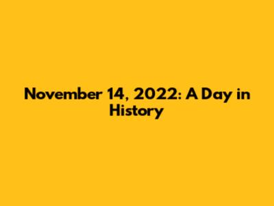 November 14, 2022: A Day In History