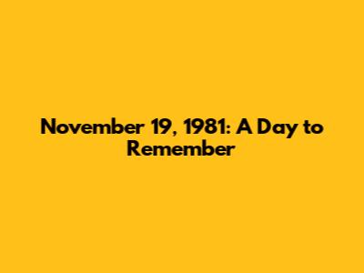 Hey guys, let's take a trip back in time! Today, we're diving into the events of November 19, 1981. It was a day filled with happenings, from political shifts to cultural moments, and everything in between. So, buckle up, and let's explore what made this day so unique. We will go over some key events that made November 19, 1981, a day to remember. This date might not be as widely known as some other historical milestones, but it holds its own interesting bits of history that are worth exploring. Understanding what happened on this day helps us to understand the world at that moment and see how things have changed since then.