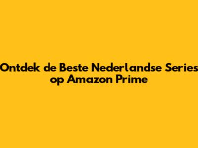 Ontdek De Beste Nederlandse Series Op Amazon Prime