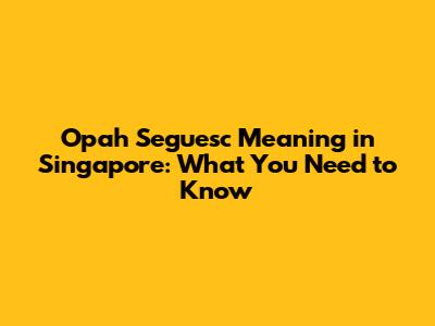 Opah Seguesc Meaning In Singapore: What You Need To Know