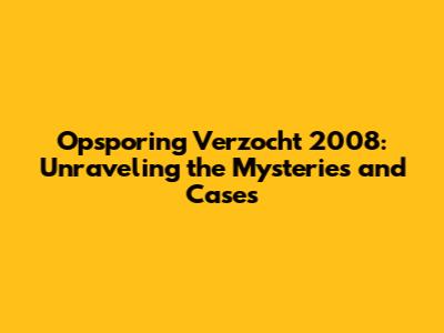 Opsporing Verzocht 2008: Unraveling The Mysteries And Cases