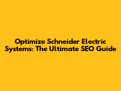Optimize Schneider Electric Systems: SEO Guide