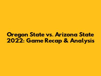 Oregon State Vs. Arizona State 2022: Game Recap & Analysis