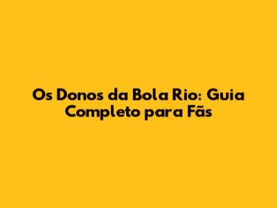 Os Donos Da Bola Rio: Guia Completo Para Fãs