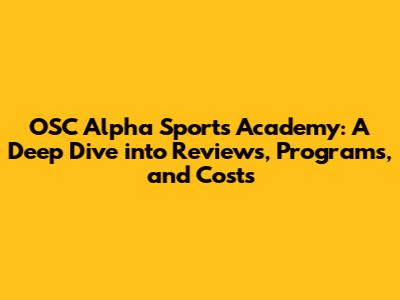 OSC Alpha Sports Academy: Reviews, Programs, And Costs