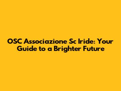 OSC Associazione Sc Iride: Your Guide To A Brighter Future