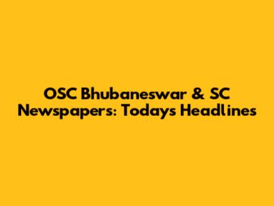 OSC Bhubaneswar & SC Newspapers: Today's Headlines
