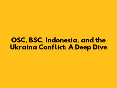 OSC, BSC, Indonesia, And The Ukraina Conflict: A Deep Dive