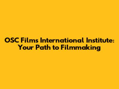 OSC Films International Institute: Your Path To Filmmaking