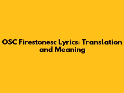 Hey guys! Ever found yourself vibing to a song but totally lost on what it means? Today, we're diving deep into the world of OSC Firestonesc! We'll explore its lyrics and uncover the hidden meanings behind the verses. Whether you're a die-hard fan or just curious, get ready to understand this song like never before. We will break down each section and provide a clear translation. No more head-scratching – just pure musical understanding.