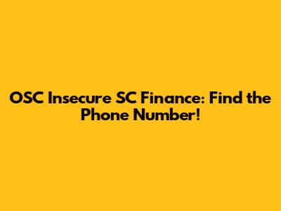 OSC Insecure SC Finance: Find The Phone Number!