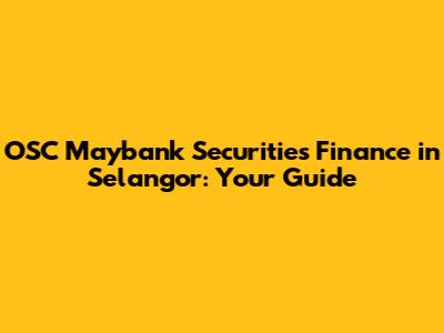 OSC Maybank Securities Finance In Selangor: Your Guide