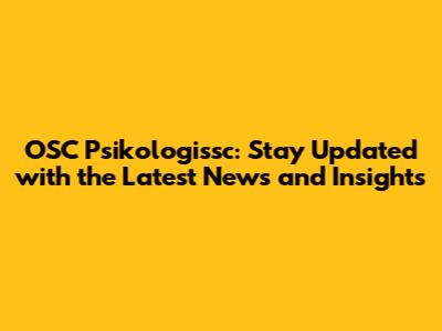 OSC Psikologissc: Stay Updated with the Latest News and Insights