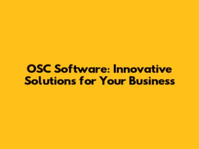OSC Software: Innovative Solutions For Your Business