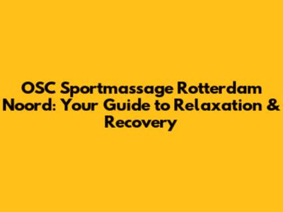 OSC Sportmassage Rotterdam Noord: Your Guide To Relaxation & Recovery