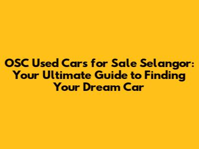 OSC Used Cars Selangor: Find Your Perfect Ride