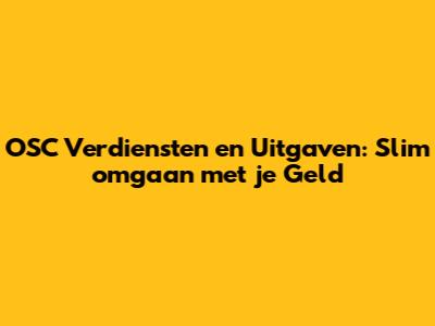 OSC Verdiensten En Uitgaven: Slim Omgaan Met Je Geld