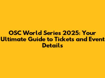 OSC World Series 2025: Tickets, Dates, And What You Need To Know!