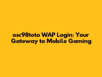 Osc98toto WAP Login: Your Gateway To Mobile Gaming