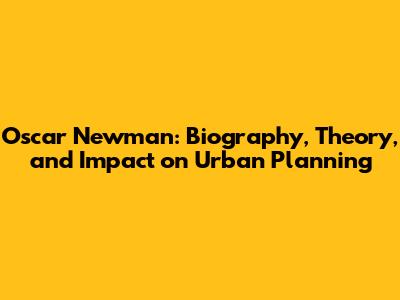 Oscar Newman: Biography, Theory, And Impact On Urban Planning