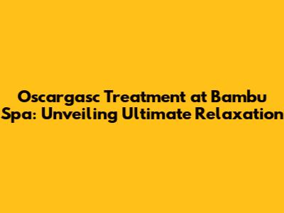 Oscargasc Treatment At Bambu Spa: Ultimate Relaxation