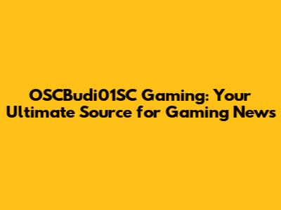 OSCBudi01SC Gaming: Your Ultimate Source For Gaming News