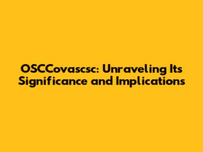 OSCCovascsc: A Deep Dive Into Its Impact