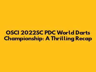 OSCI 2022SC PDC Darts Championship: A Thrilling Recap