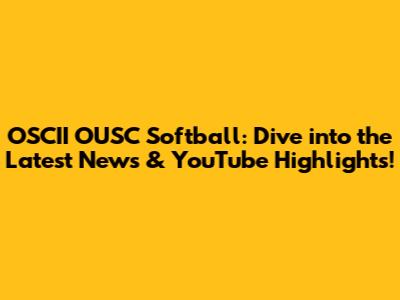 OSCII OUSC Softball: Latest News & YouTube Updates