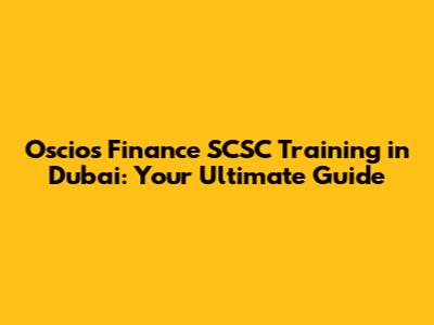 Oscios Finance SCSC Training In Dubai: Your Ultimate Guide
