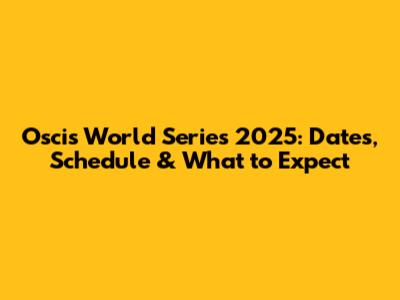 Oscis World Series 2025: Dates, Schedule & What To Expect