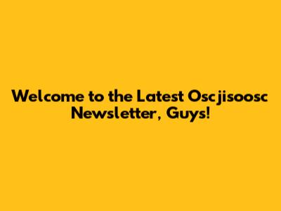Welcome to the Latest Oscjisoosc Newsletter, Guys!