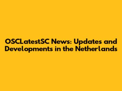 OSCLatestSC News: Updates And Developments In The Netherlands