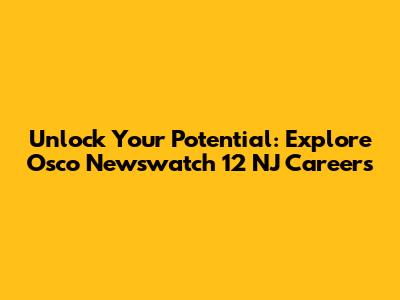 Hey everyone! If you're on the hunt for a dynamic and rewarding career path, you've landed in the right spot. We're diving deep into the exciting world of Osco Newswatch 12 NJ careers, a place where innovation meets community impact. Think about it, guys – working for a leading local news organization means you're not just getting a job; you're becoming part of the pulse of New Jersey, delivering vital information and stories that matter to your neighbors. This isn't just about reporting the news; it's about shaping conversations, connecting people, and making a real difference in your local area. The media landscape is constantly evolving, and Osco Newswatch 12 NJ is at the forefront, embracing new technologies and storytelling techniques to keep audiences informed and engaged. Whether you're a seasoned pro or just starting out, there's a place for your unique talents here. We're talking about roles that span from the technical wizardry behind the scenes to the on-air personalities who bring the stories to life. Imagine being a part of the team that breaks the biggest local stories, covers community events, or produces in-depth investigative pieces. It's a fast-paced environment, sure, but the rewards – both personal and professional – are immense. You'll be challenged, you'll learn new skills, and you'll work alongside passionate, driven individuals who are just as committed to excellence as you are. Plus, the chance to grow within the organization is a huge plus. Osco Newswatch 12 NJ invests in its people, offering opportunities for advancement and professional development. So, if you're ready to take your career to the next level and be a part of something truly impactful, stick around as we explore the incredible career opportunities waiting for you at Osco Newswatch 12 NJ.