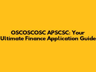 OSCOSCOSC APSCSC: Finance Application Guide
