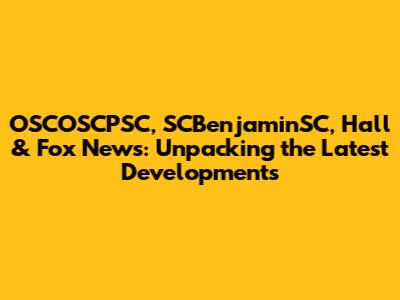 OSCOSCPSC, SCBenjaminSC, Hall & Fox News: Latest Updates