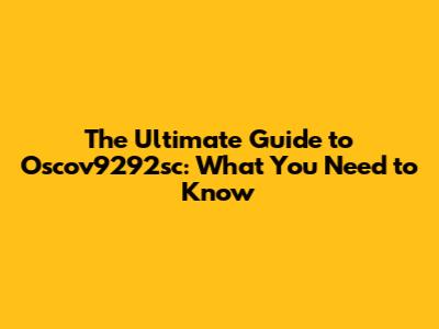 The Ultimate Guide to Oscov9292sc: What You Need to Know