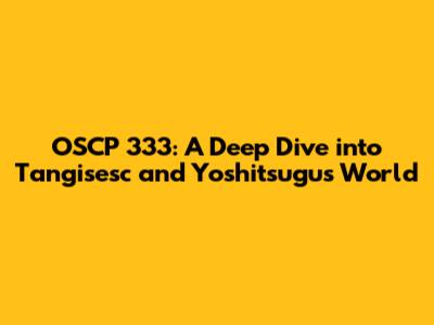 Hey there, cybersecurity enthusiasts! Ever heard of OSCP 333? If you're knee-deep in the world of penetration testing and ethical hacking, chances are you have. Today, we're going to dive headfirst into the fascinating world of OSCP 333, exploring the roles of Tangisesc and Yoshitsugu, two key players in this cybersecurity saga. Get ready to unravel the complexities, understand the methodologies, and appreciate the skills that make this an unforgettable journey. We're going to explore what makes OSCP 333 so special, and how Tangisesc and Yoshitsugu contribute to its unique challenges and opportunities.