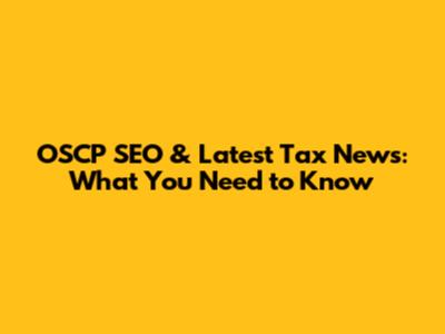 OSCP SEO & Latest Tax News: What You Need To Know