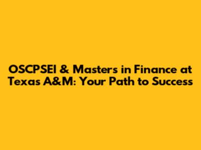 OSCPSEI & Master's In Finance At Texas A&M