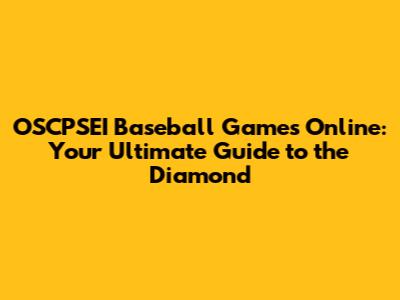 OSCPSEI Baseball Games: Your Ultimate Online Guide