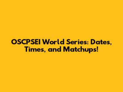 OSCPSEI World Series: Dates, Times, And Matchups!